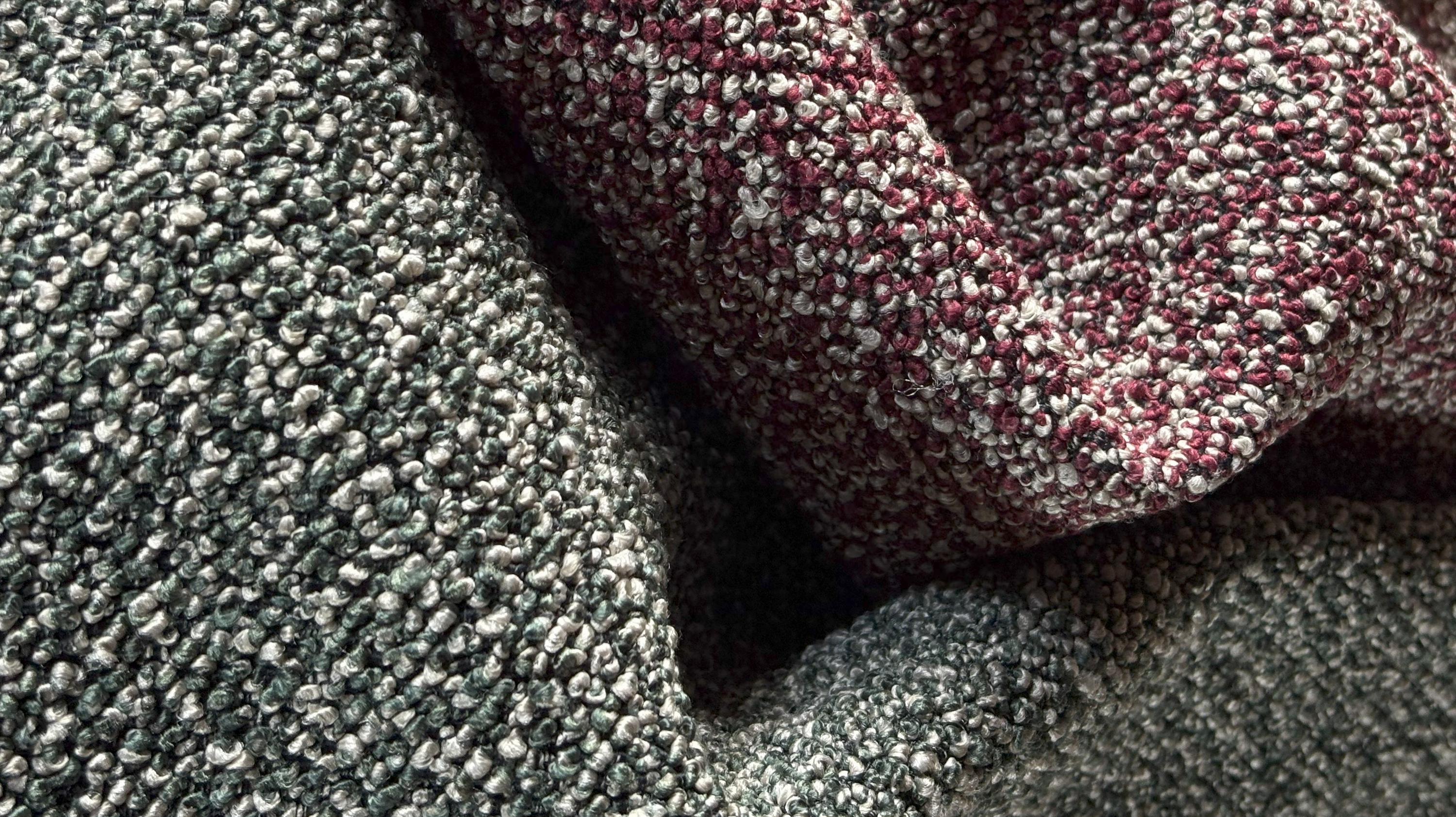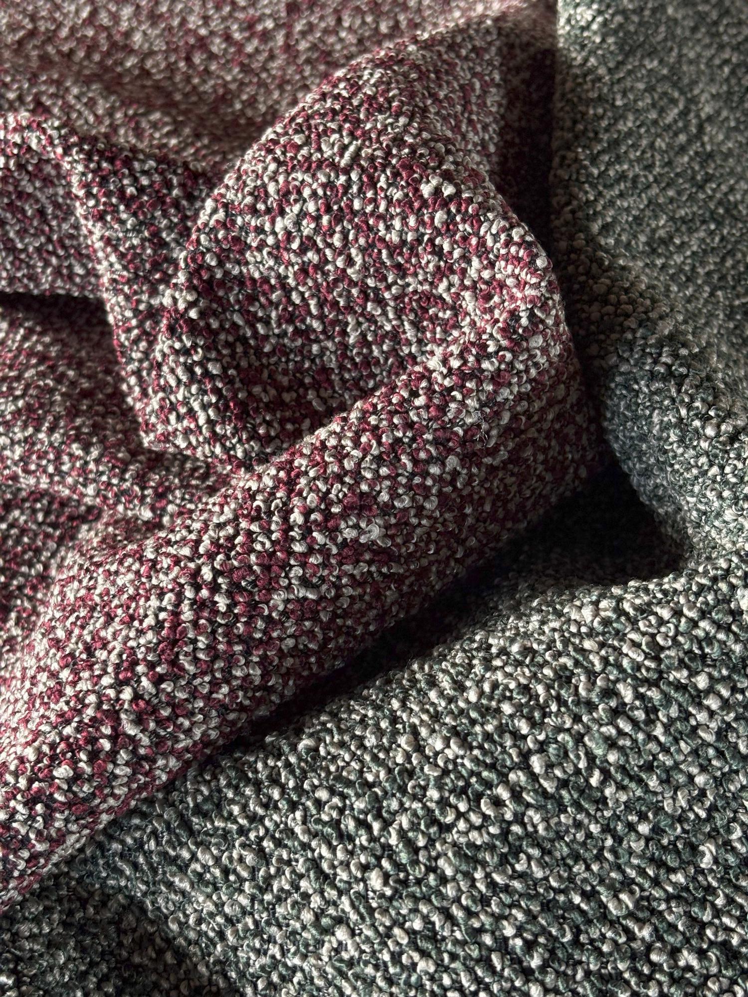 BRIGITTE interprets bouclé in a bolder, more contemporary way. Its rich, textured texture comes to life from the interweaving of two contrasting yarns, creating a dynamic and sophisticated chromatic effect. The result is a fabric with a strong personality, capable of capturing the eye and adding character to any space. A modern bouclé, eccentric yet balanced, combining visual depth and tactile pleasure. Perfect for those who want to stand out with style, without sacrificing refinement.